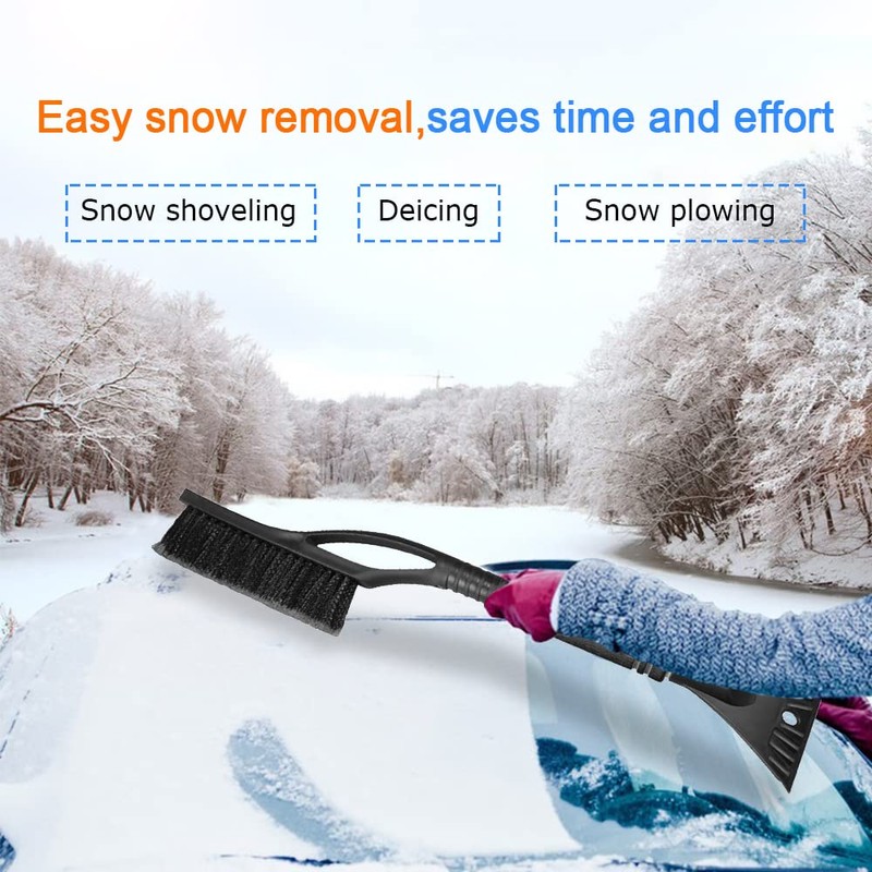 - [Ergonomic grip]: This snow shovel tool equipped with super soft sponge handle, while providing additional comfort, it can also keep your hands away from the cold, allowing you to brush snow and scrape ice comfortably, allowing you to better control when removing snow, ice or frost from the windshield.