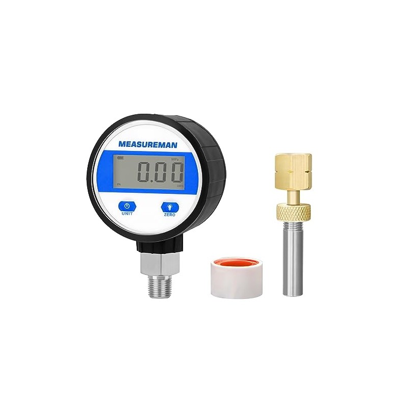 MEASUREMAN 0-100psi Digital Hydraulic Industrial Pressure Gauge with Brass Gauge Adaptor 1/4NPT Female,2-1/2 OAL x 1-2/5" x 1/8" Probe with Stainless Steel Sheath,Pressure Test Kit