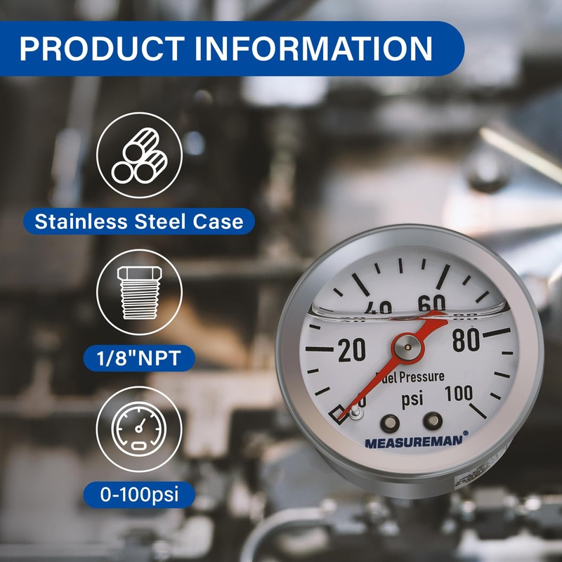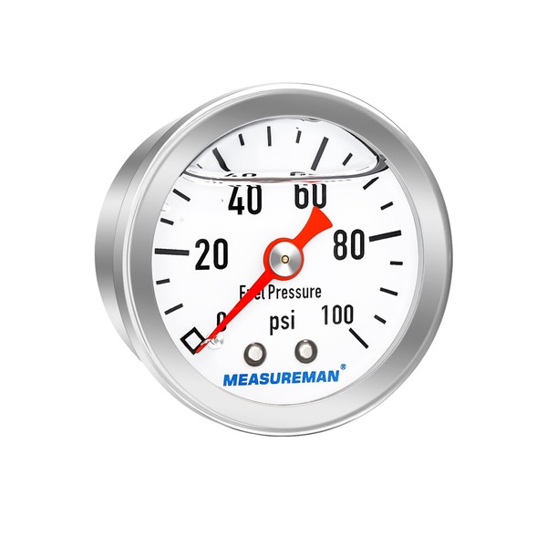 MEASUREMAN 1-1/2" Dial Size, Liquid Filled Fuel Pressure Gauge, 0-100Psi