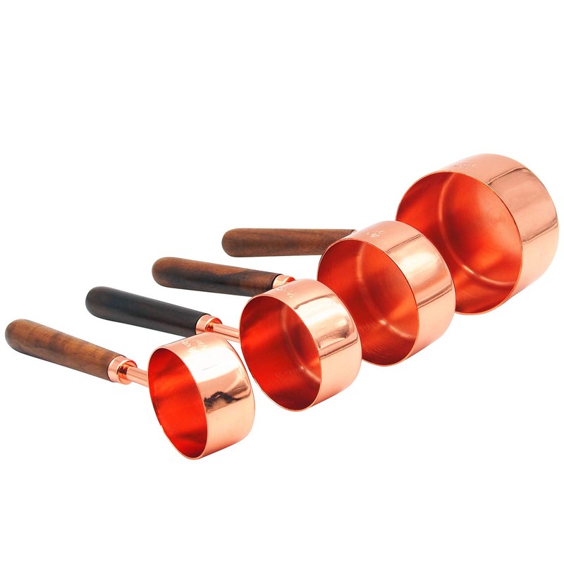 Measuring Cups Set, TeenGo Stainless Steel Copper Measuring Cups Set for Dry, Liquid Ingredients with Wooden Handle Used for Cooking & Baking