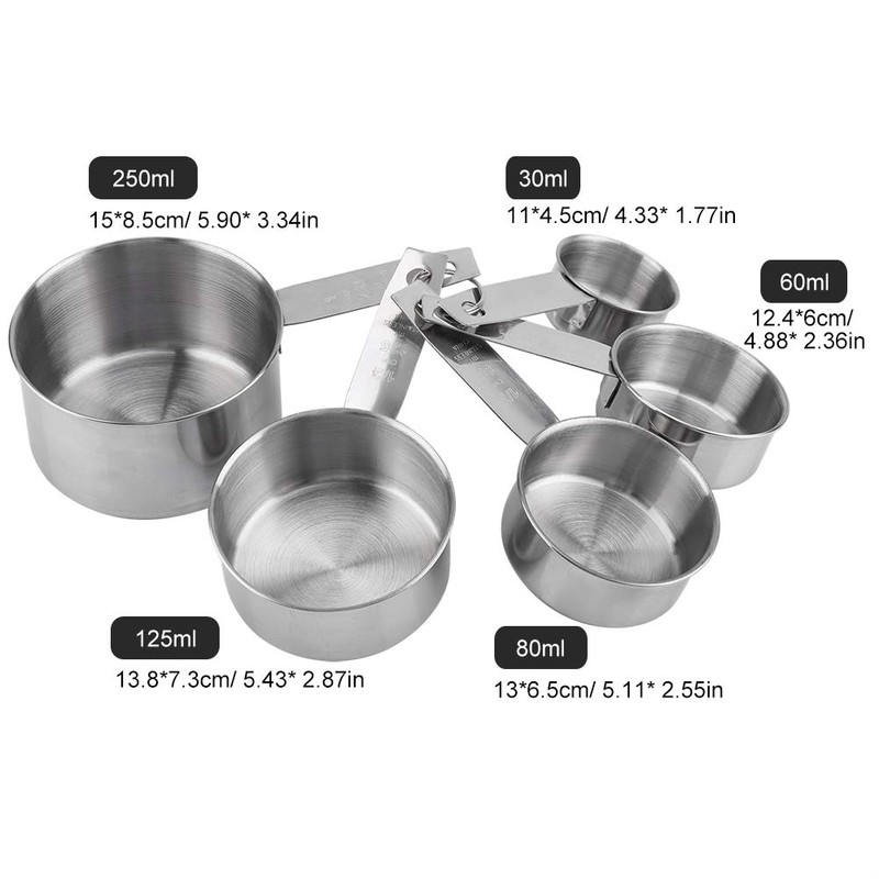 • [Measuring device cooking accessory]: this spice spoon gram stainless steel measuring cup contains 6 individual measuring cups long spoons for different dimensions: 250ml, 125ml, 80ml, 60ml, 30ml, from spoon large to spoon small, measuring spoon sets to meet all your cooking and baking needs; All measuring cups and dosing spoons are neatly nested inside each other instead of being scattered everywhere, so they have to There are no There There are there miss something over time