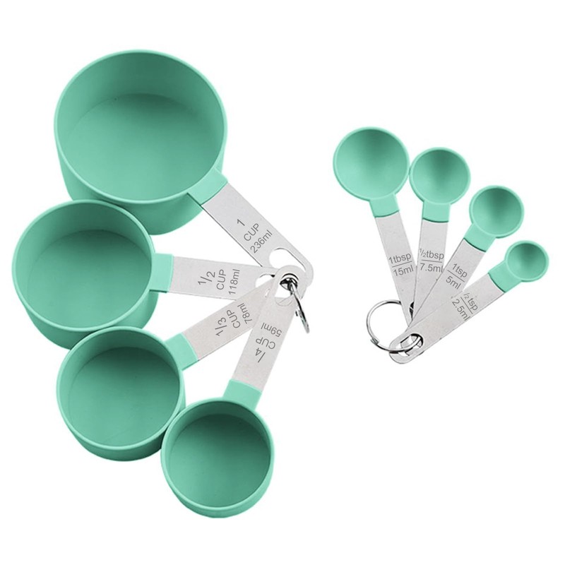 - 8 pieces, multiple sizes: measuring spoon set contains 4 measuring cups and 4 spoons, cup measuring cup set is 1 cup (236 ml), 1/2 cup (118 ml), 1/3 cup (78 ml) and 1/4 cup (59 ml), and spoons are 1 Tbsp (15 ml), 1/2 Tbsp (7.5 ml) 1 Tsp, 1 (5 ml) and 1/2 tsp (2.5 ml), all in different sizes so you can easily control the amounts of ingredients. With the different sizes, you can easily control the amount of ingredients to meet all cooking and baking requirements.