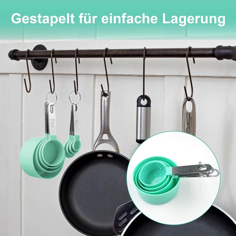 - Easy to use: our measuring cups and spoons set are equipped with small holes and steel rings that can be easily removed from the clamping ring and used individually. But you can also assemble the set and access it at any time for easy organisation and storage, and put it in the dishwasher for cleaning.