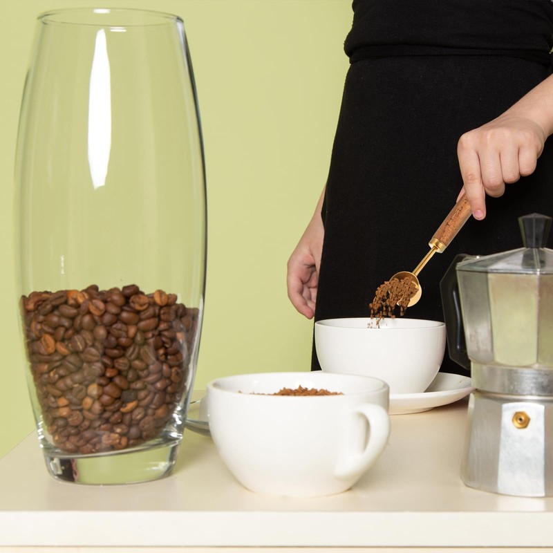 - 【Reliable Material】The gold measuring spoon is made of high-quality stainless steel with a wooden handle, which is durable and not easy to rust.