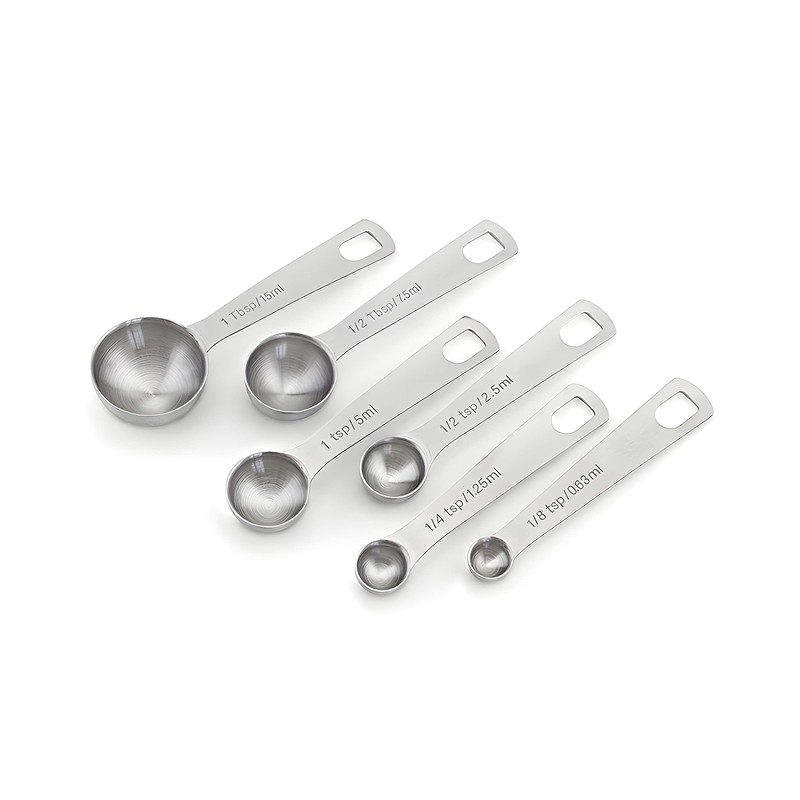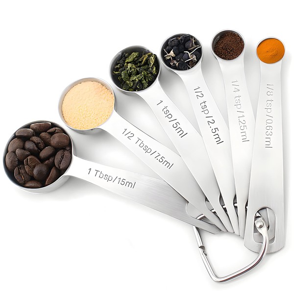 Measuring Spoons Set Stainless Steel - Set of 6 Stacking Metal Small Teaspoons Tablespoons - 1/8 TSP, 1/4 TSP, 1/2 TSP, 1 TSP, 1/2 Tbsp, 1Tbsp - Coffee Spice Jars Food Scoop for Dry Liquid Ingredients