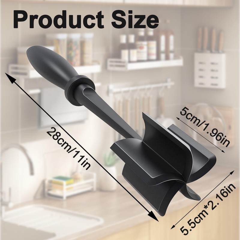 Our meat masher utensil adopts anti-dirt design,make the food particles glide off upon contact,just rinse with water then you can get the chopper tool clean, greatly easy your kitchen work.