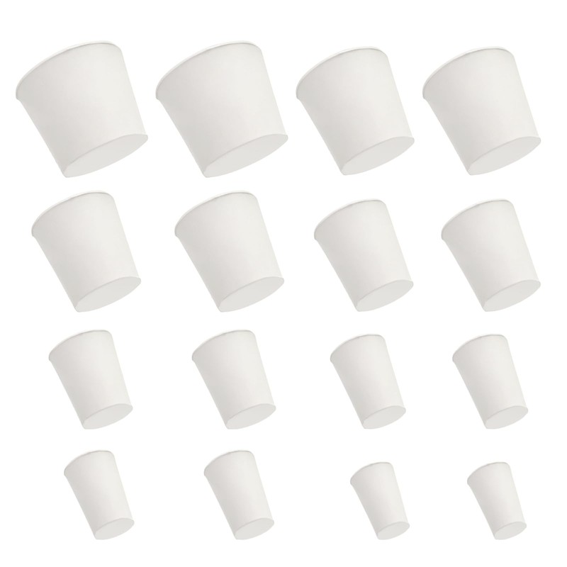 Mebamce 16pcs Solid Rubber Stoppers, Laboratory Rubber Plug, Tapered Hole Bung for Pipe Tank Bottle Sealing, 8 Different Sizes (White)