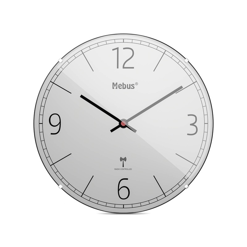 Mebus Radio-Controlled Wall Clock, Silent, Dome Glass, Frameless, Grey, Model 12986 - Modern Design and Exact Time