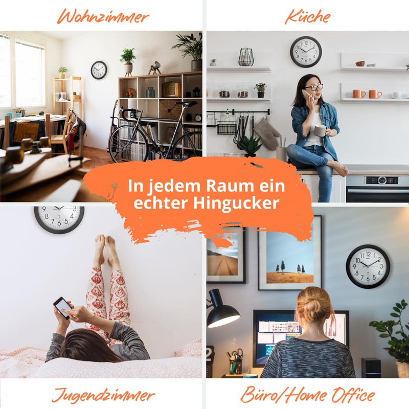 • MEDIUM WALL CLOCK: The round wall clock has a diameter of 25 cm - which is about a breakfast plate. The depth from the wall to the front edge is 1.65 inches