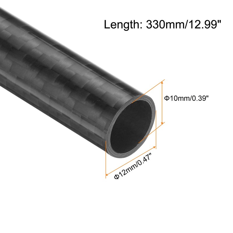 - Diameter: 10 x 12mm/0.39 x 0.47 inch(ID*OD);Length: 330mm/12.99 inch;Surface: Twill Glossy Surface;Color:Black;Package contains:1 Pcs x carbon fiber round tube