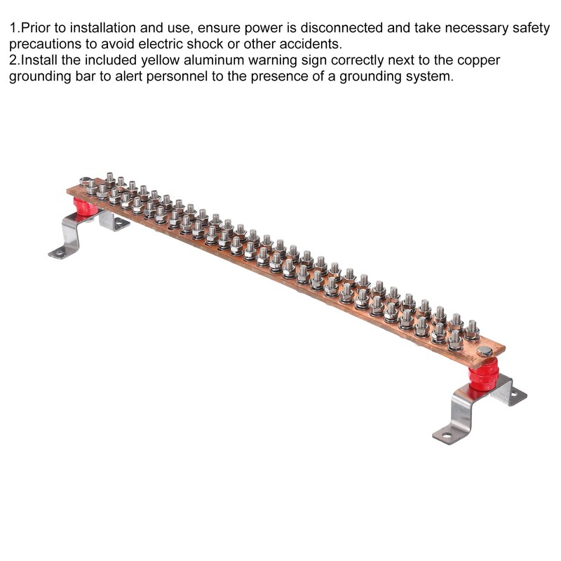 - You will get: 56 Terminal Positions Copper Ground Bar x 1 Pcs; Size:24" x 2"; M8 Hexagon Screw x 56 Set; Stainless Steel Brackets x 2 Pcs; Insulation Column x 2 Pcs; Material: T2 copper.