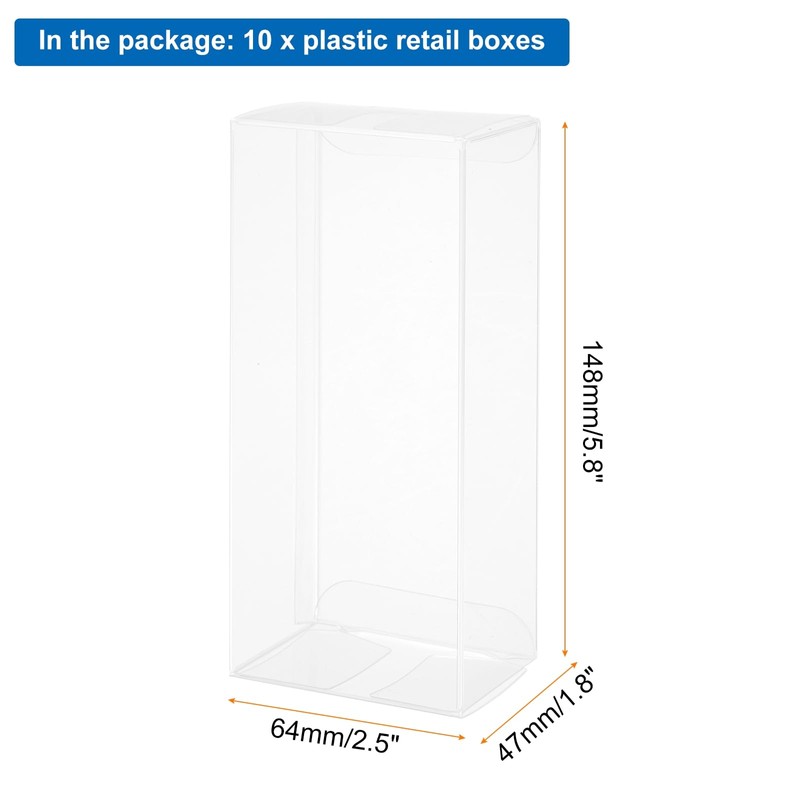 - Our transparent gift boxes are made of durable plastic, with a transparent surface and no extra decorations. These transparent container boxes will add a touch of elegance to any item inside.Unleash your creativity and use labels, ribbons, confetti or other decorations to DIY gift boxes. Add decorations that match your event theme to each rectangular clear plastic boxes to increase the atmosphere of the event.