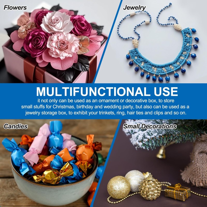- The plastic gift boxes are multipurpose function, it not only can be used as an ornament or decorative box, to store small stuffs for Christmas, birthday and wedding party, but also can be used as a jewelry storage box, to exhibit your trinkets, ring, hair ties and clips and so on.