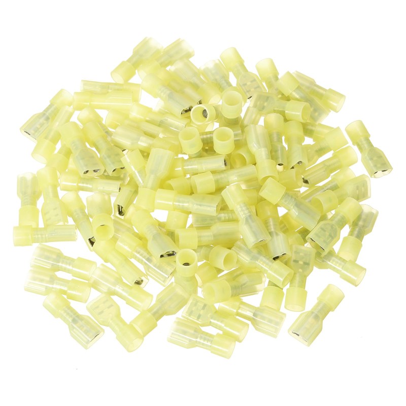 MECCANIXITY 100PCS Female Spade Connector, 12-10 AWG Nylon Quick Disconnect Wire Connector Crimp Terminal Insulated for Automotive Boat, Yellow