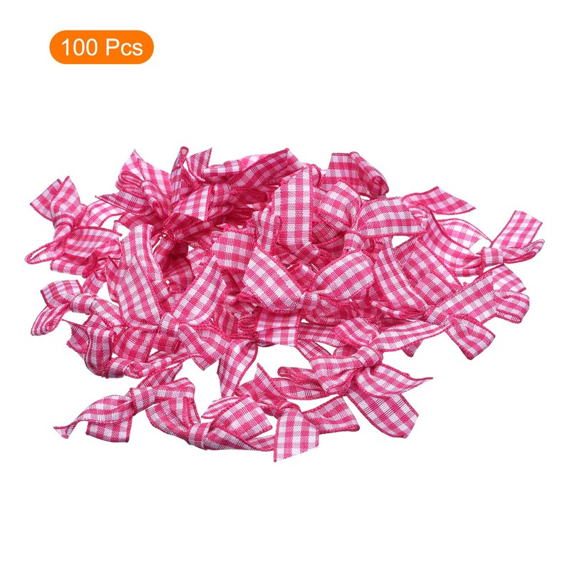 MECCANIXITY 100Pcs Mini Gingham Ribbon Bow Checkered Fabric Satin Ribbon Flower Bows for Craft DIY Sewing Wedding Birthday Party Deep Pink and White