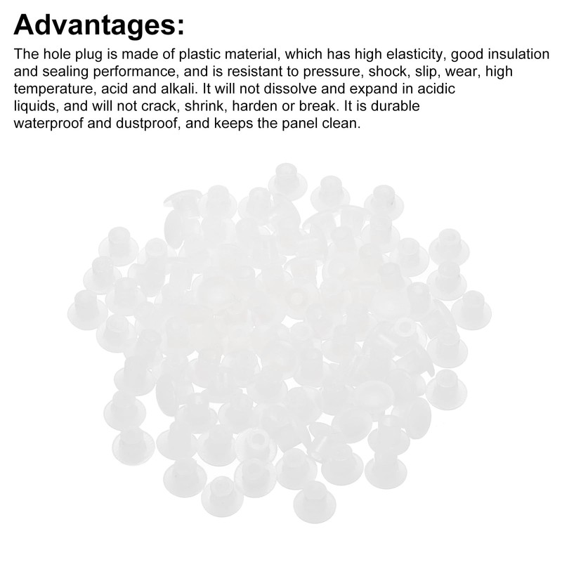 The hole plug is made of plastic material, which has high elasticity, good insulation and sealing performance, and is resistant to pressure, shock, slip, wear, high temperature, acid and alkali. It will not dissolve and expand in acidic liquids, and will not crack, shrink, harden or break. It is durable, waterproof and dustproof, and keeps the panel clean