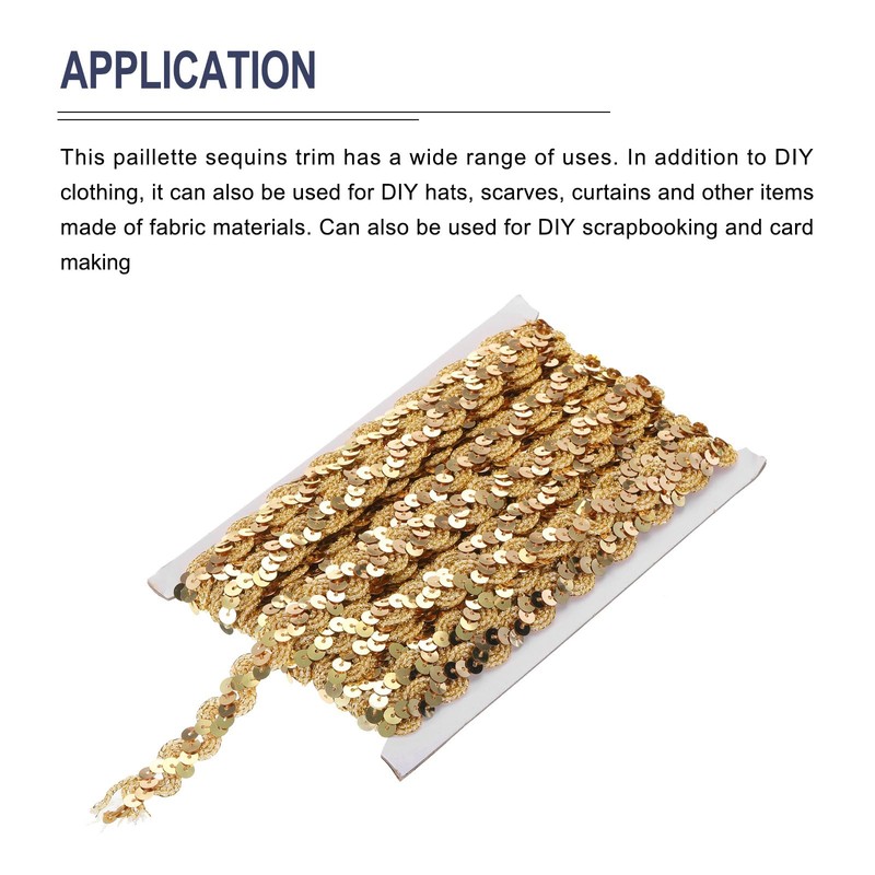 - This paillette sequins trim has a wide range of uses. In addition to DIY clothing, it can also be used for DIY hats, scarves, curtains and other items made of fabric materials. Can also be used for DIY scrapbooking and card making