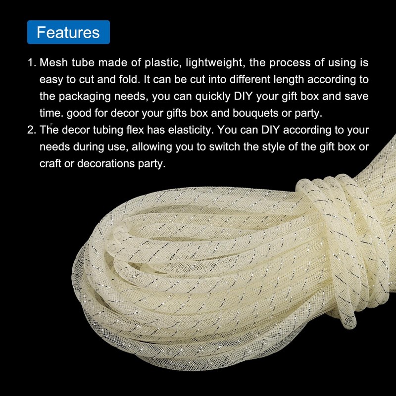 - Mesh tube made of plastic, lightweight, the process of using is easy to cut and fold. It can be cut into different length according to the packaging needs, you can quickly DIY your gift box and save time. good for decor your gifts box and bouquets or party.