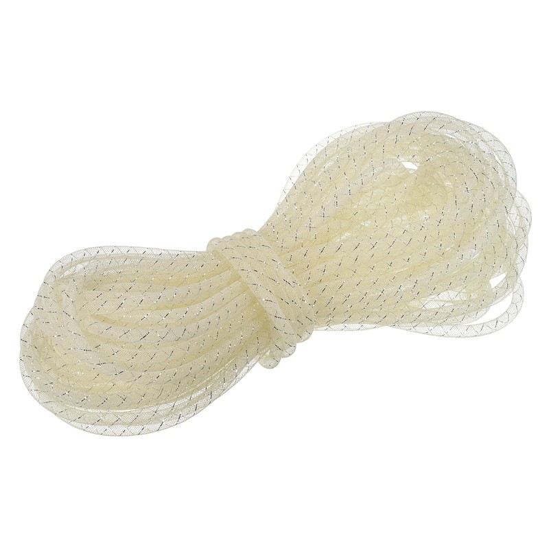 - Color: Milky White;Material: Plastic;Surface: Silver Thread;Total Size: 14M x 8mm / 15 Yards x 1/3 Inch (L*D)