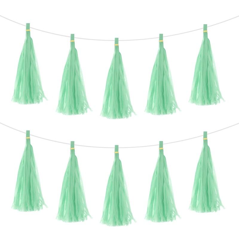 MECCANIXITY 15Pcs Light Green Tassel Garland Banner with Rope Tissue Paper Tassels Party DIY Kits for Anniversary Wedding Birthday Party