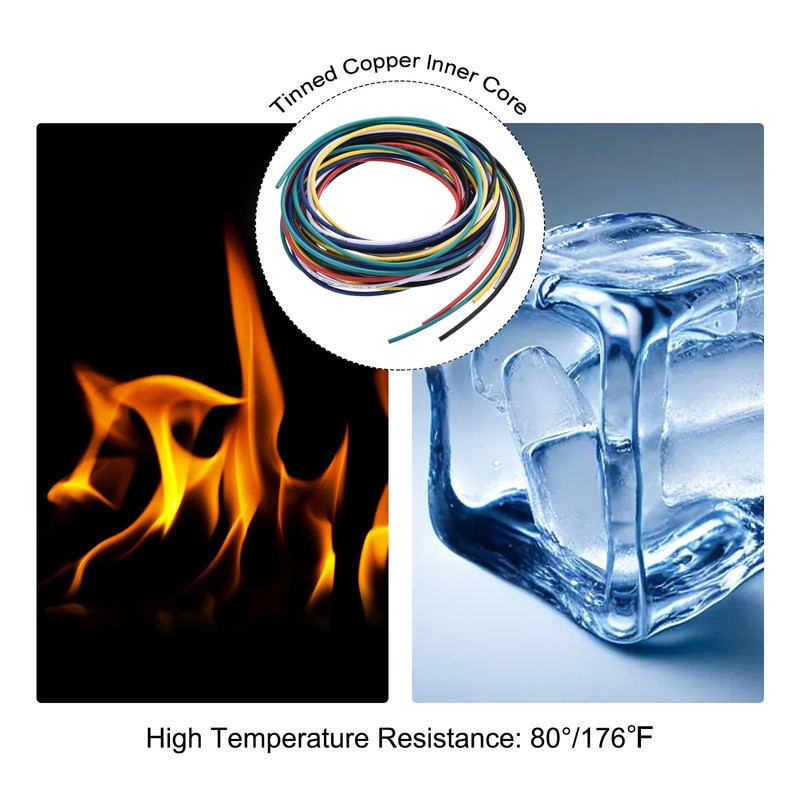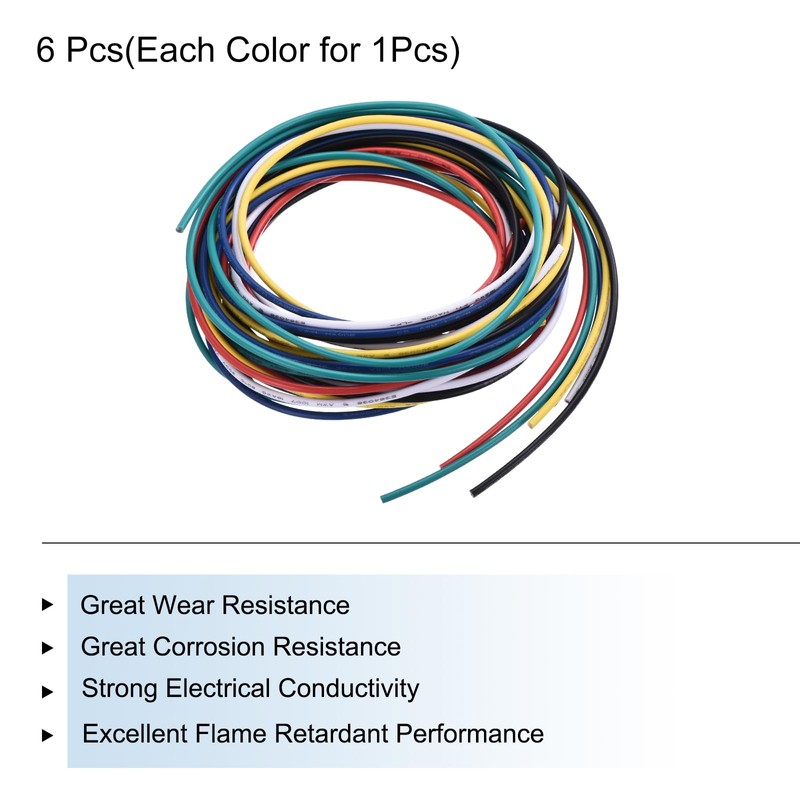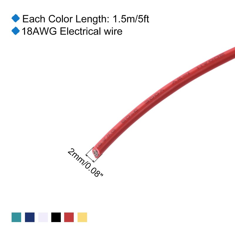 - Package Content: 1 Set x Electrical PVC Wire; 6 Color: Black Red Blue Green Yellow White; Each Color Length: 1.5m/5ft; Outer Diameter: 2mm/0.08 inch; Style: 1 Core of Multi-Strand Wiring; Insulating Material: PVC; Conductor Material: Tinned Copper; Rated Voltage: 300V; High Temperature Resistance: 80°/176℉