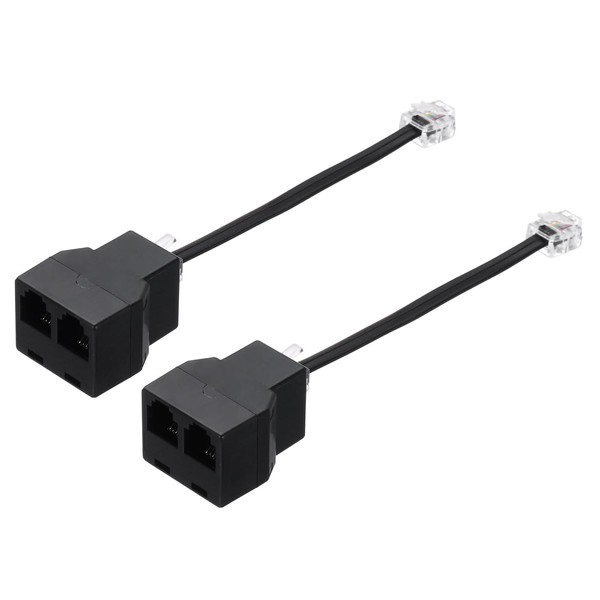 MECCANIXITY 2 Pack Phone Jack Splitter, RJ11 6P4C Telephone Line 2 Way Splitter Adapter for Landline, 0.5ft, Black