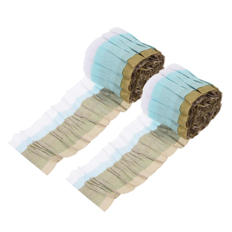 - Color: Gold, White, Light Blue; Material: Wood Pulp; Length: 300cm/9.84ft; Width:7cm/ 2.8 inch; Thickness: 0.5cm/ 0.2 inch; In the package of: 2Pcs x Crepe Paper Streamers