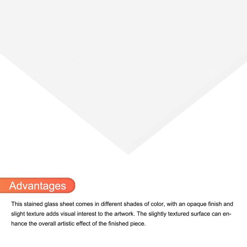 - Material: Glass; Color: White; Size: 7.9 Inch x 5.9 Inch; Thickness: 1/10 Inch; In the package of: 2 Pcs x Stained glass sheet.