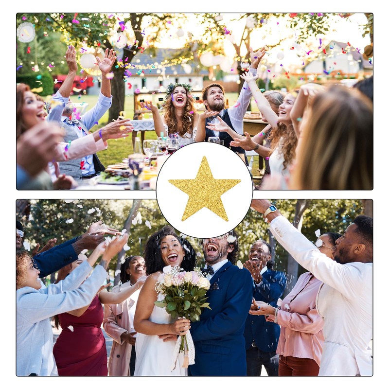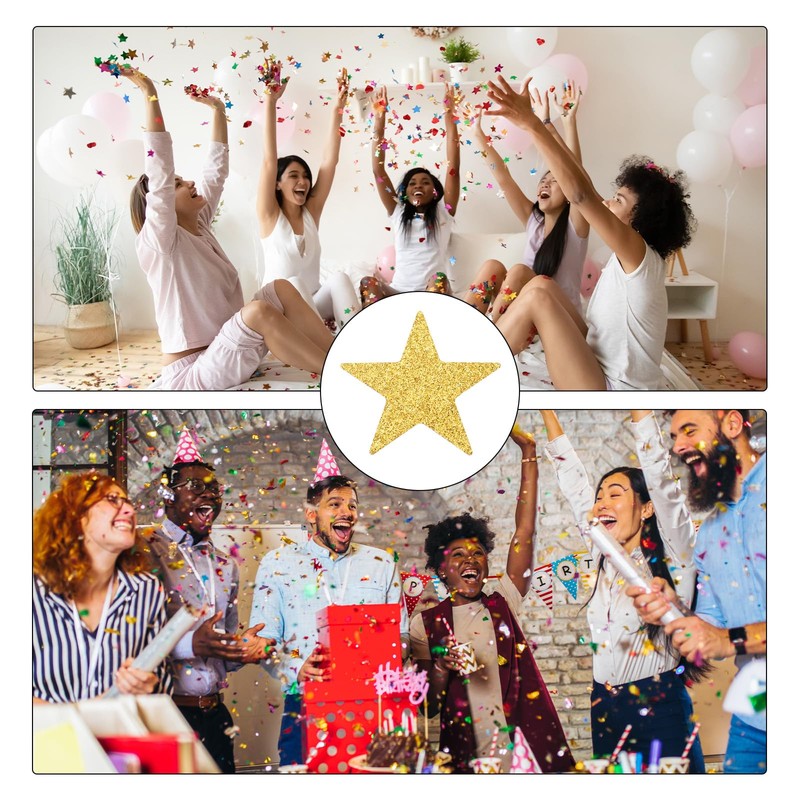 - Shape:Star, Color:Gold, Size:2x2cm/0.79x0.79Inch, Material: PET, paper, Package:200Pcs x Confetti
