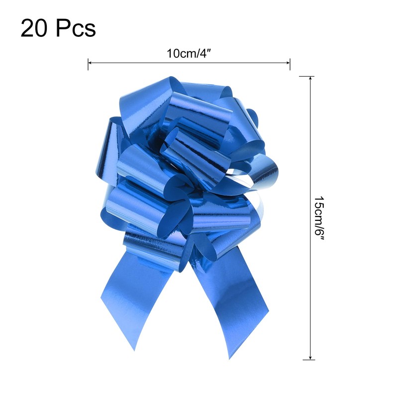 MECCANIXITY 20pcs 4 Inch Metallic Large Big Pull Bow Gift Wrapping Bows Ribbon for Wedding Car Baskets Presents Christmas Bow, Blue