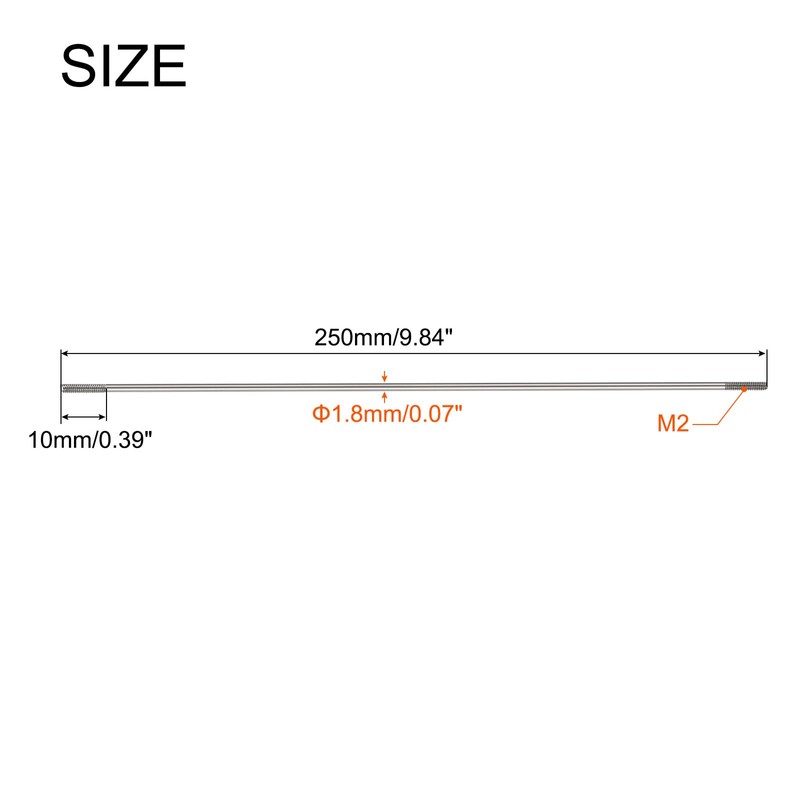 Pushrod Connector,Color: Silver Tone;Material: 304 Stainless Steel;Total Length:250mm/9.84 inch;Diameter: 1.8mm/0.07 inch;Thread: M2;Length of Thread:10mm/0.39 inch;In the package of:20pcs x Double End Thread Stud Push Rod;