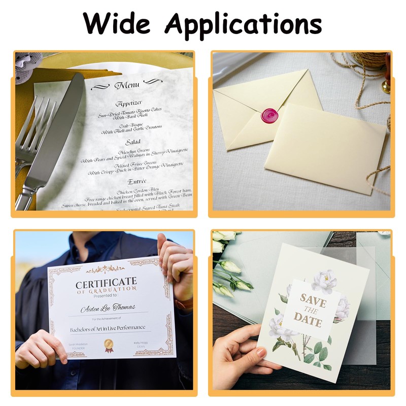 Outstanding Texture: Crafted from durable, elected cardstock material, these stationery paper sheets offer a smooth yet textured finish for writing, printing, and crafting.