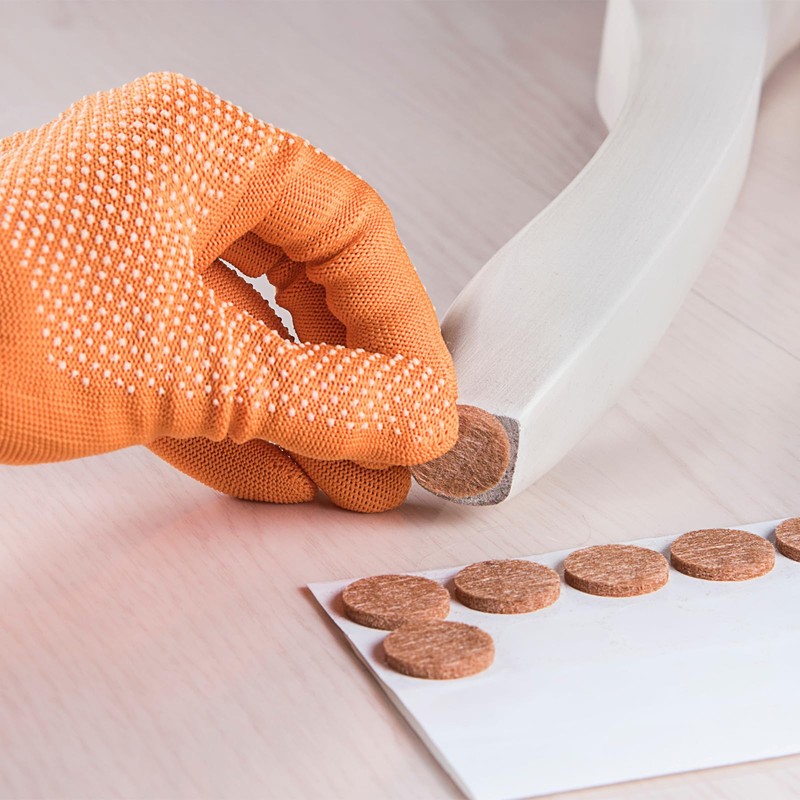 - High-density felt, tough texture, firm and wide, not easy to deform. Special transparent oil glue for felt, strong adhesion, high and low temperature resistance. Comes with strong backing glue, ready to use after tearing, soft and tough, easy to use. Effectively reduce the noise of chairs rubbing against the floor, prevent friction damage of placed items, protect the floor from scratches on the sofa, and effectively reduce the impact of heavy furniture such as beds on the floor.
