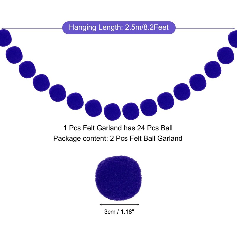 MECCANIXITY 2Pcs Felt Ball Garland Blue Pom Pom Garland Handing Balls 8.2 Feet Long 24 Balls Party Banner Decor for Christmas Birthday Party Decoration