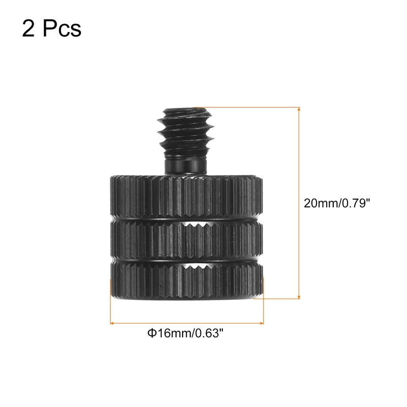 - Mic Stand Adapter, Size: 16mm x 20mm / 0.63 x 0.79 inch (D*H); Body Height: 13mm / 0.59 inch; Thread: M12 Female to 1/4 Male; Material: Aluminum alloy; Color: Black; In the Package: 2 x Microphone Stand Adapter