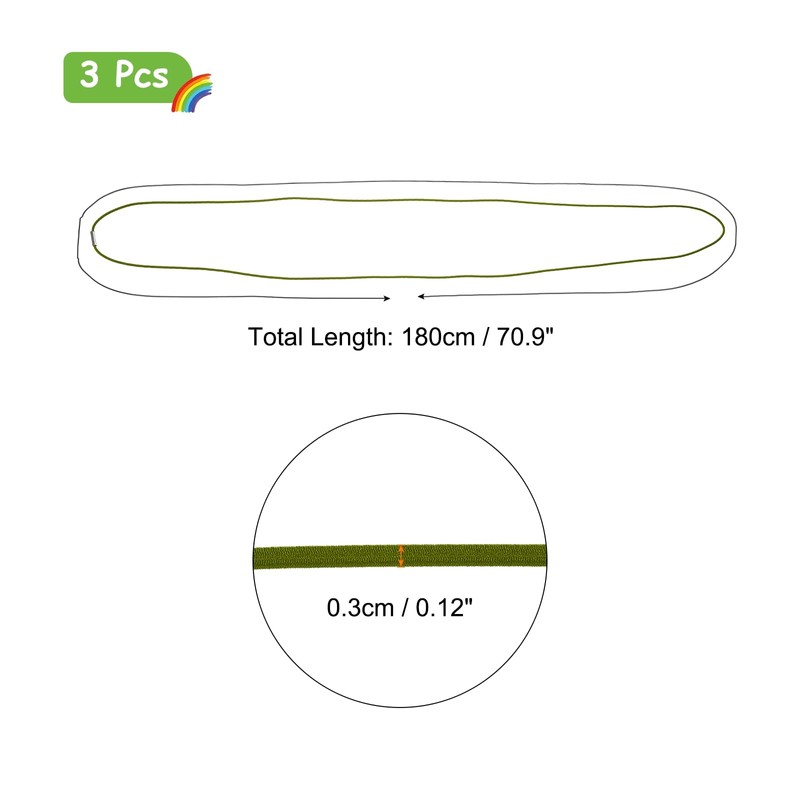 - Normal Length: 180 cm / 70.9 Inch; Stretch Length: 439 cm / 172.8 Inch; Applicable Gallons/Yardage: 55,65,96 Gallon; Width: 0.4 cm / 0.16 Inch; Diameter: 0.3 cm / 0.12 Inch; Color: Olive Green; Material: Rubber; In the package of: 3 x trash can rubber bands