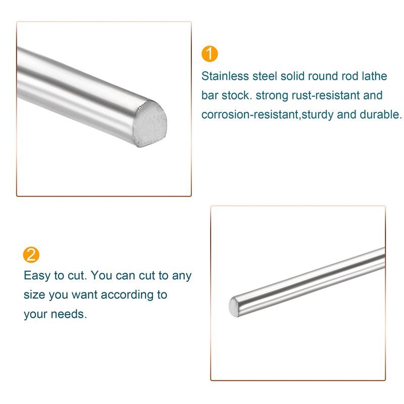 - Made of stainless steel, solid round rod lathe bar stock strong rust-resistant and corrosion-resistant, sturdy and durable.