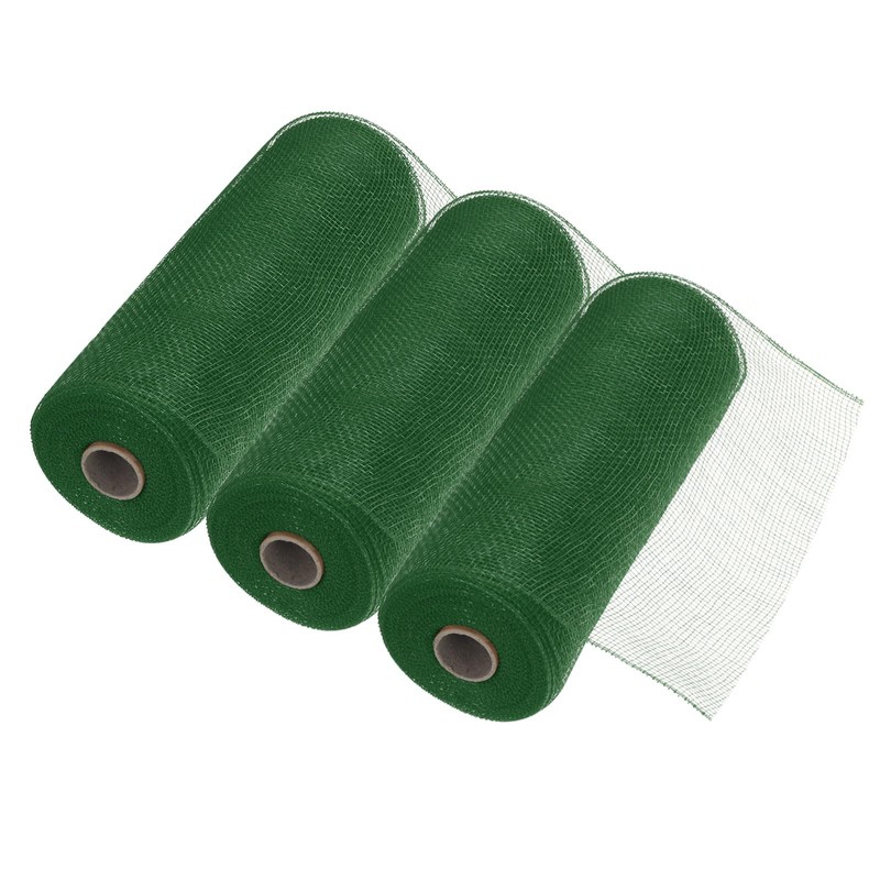 MECCANIXITY 3pcs 10 Inch Poly Burlap Mesh for Wreath, Decorative Mesh Fabric Ribbon 10 Yard for Fall Easter Christmas Flower Bow, Dark Green