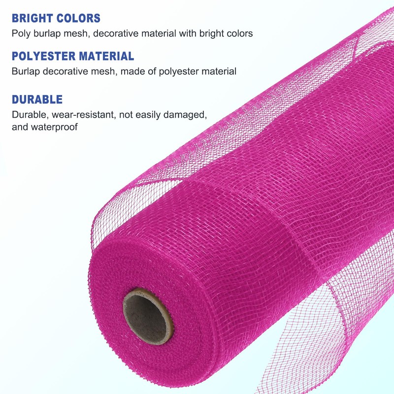 Poly burlap mesh, decorative material with bright colors, used to decorate wreaths, bouquets, etc. in spring, summer, and fall, adding bright colors and natural texture; Burlap decorative mesh, made of polyester material, which is durable, wear-resistant, not easily damaged, and waterproof. Floral burlap mesh roll can be used outdoors in gardens, lawns, and other areas; Poly burlap decorative mesh can be cut, folded, and packaged for easy use, especially suitable for gift wrapping