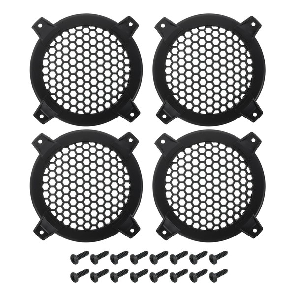 - Suit for 4 inch speaker,we provide here, are in the size of:Mesh Color:Black;Mesh Material:Plastic;Frame Color:Black;Frame Material: Plastic;Inner Diameter x Outer Diameter:93mm x 125mm / 3.66inch x 4.92inch;Mounting Hole Hole Distance:138mm / 5.43inch;Mounting Hole Diameter:4mm / 0.16inch;Installation Method:Screws;Screws Size:Screws;Size:M4*16(Black);In the package of: 4 Pcs x Speaker Grill Cover + 16 Pcs x Screws;