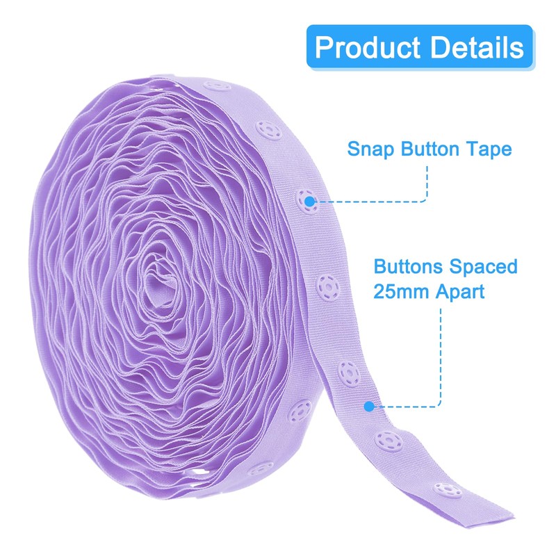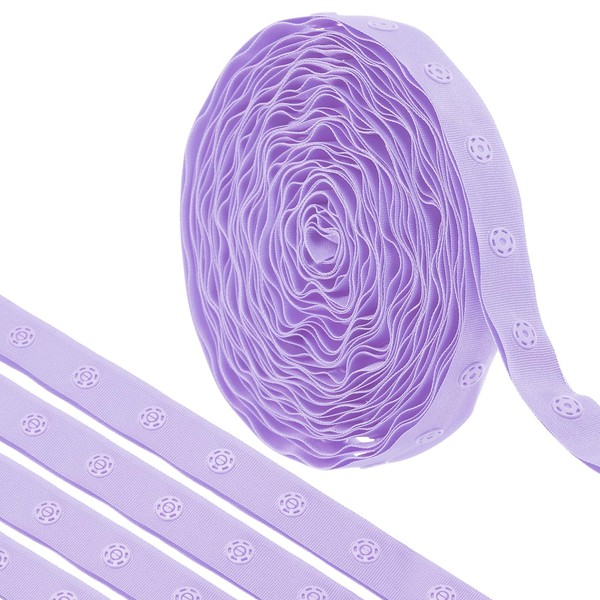MECCANIXITY 4 Yard Snap Button Tape for Sewing, Cotton Snap Button Trim Fastener Buckles Tape for Clothes Fabric DIY Craft, Light Purple