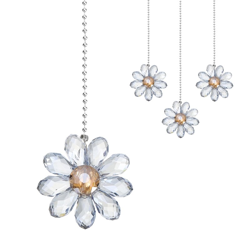 - Stylish crystal flower pendant design, looking delicate and shiny in the sun, making light reflection, adding a touch of elegance to your fan, enhancing the overall aesthetic appeal of your space. Sturdy metal chain ensures long-lasting durability, ensuring reliable performance over time. Offering a convenient way to operate your fan and lights without the need for a remote control or wall switch. Suitable for most ceiling fans and light fixtures.