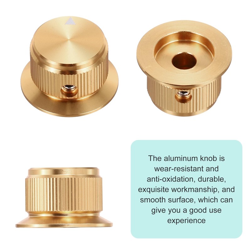 - 1. The knobs are well made with a smooth surface, without burrs or sharp edges, full aluminium knobs without any plastic inserts 2. Fit Guitar, Bass, Amplifier, Power Amplifier or other Audio Equipment with 1/4" shaft potentiometers. Screw can help you lock the knobs into position without falling off