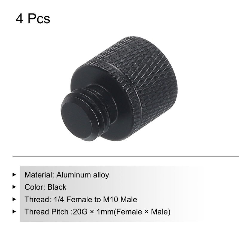 MECCANIXITY 4Pcs Mic Stand Adapter 1/4 Female to M10 Male Camera Screw Thread Adapter for Microphone Tripod Stand Black
