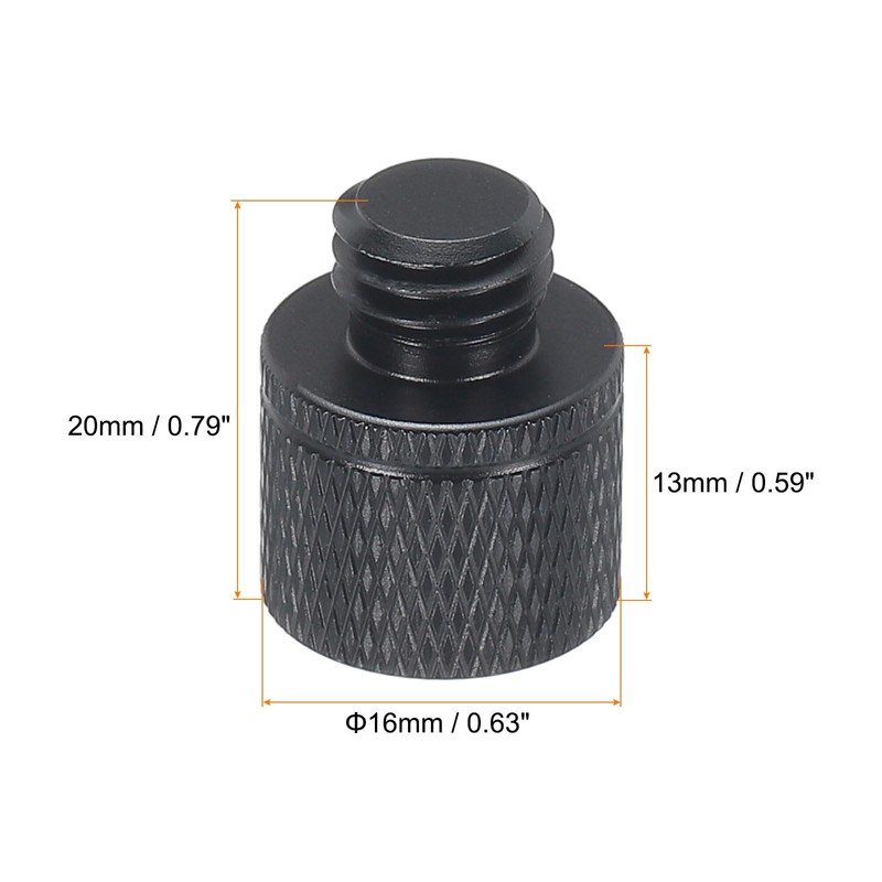 - Camera Screw Thread, we provide here, are in the size of:Material: Aluminum alloy; Color:Black; Thread: 1/4 Female to M10 Male; Total Size:16mm x 20mm / 0.63 x 0.79 inch (D*H)