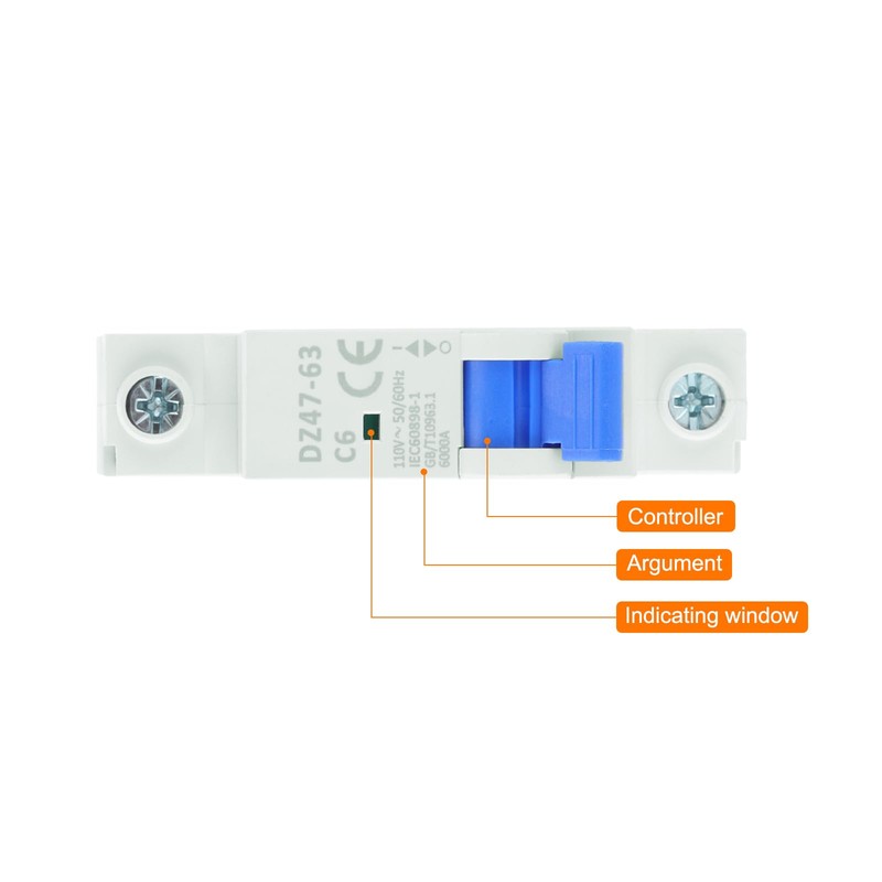 - Model: DZ47-63;Rated Current: 6A ; Rated Voltage: AC 110V ; Circuit breaker configuration: 1 Pole ; Breaking capacity: 6000A;Handle color: blue;