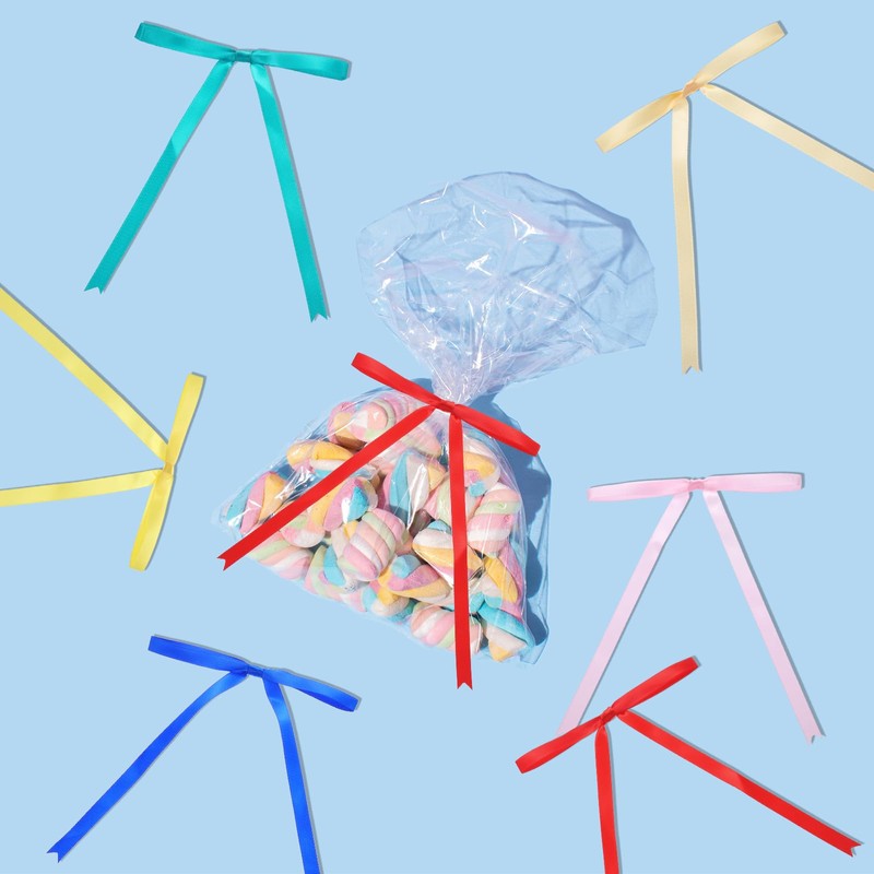 1. Choose the color of the Mini Ribbon Bow that matches your project or gift wrapping paper.