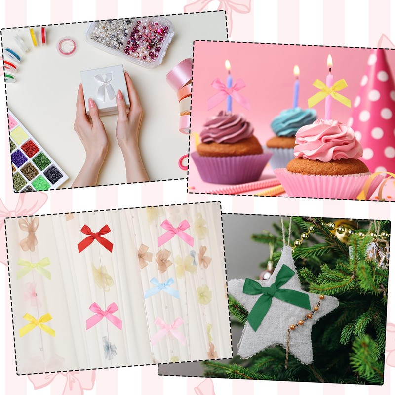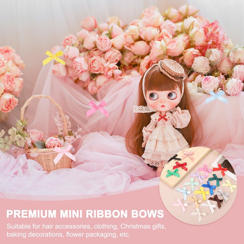 - 1. Choose the color of the Mini Ribbon Bow that matches your project or gift wrapping paper. 2. Use twist ties (not included here) or or glue to secure the mini ribbon bows to desired surfaces such as gift boxes, cards, or crafts. 3. Adjust the position of the bow if necessary to get the desired look.
