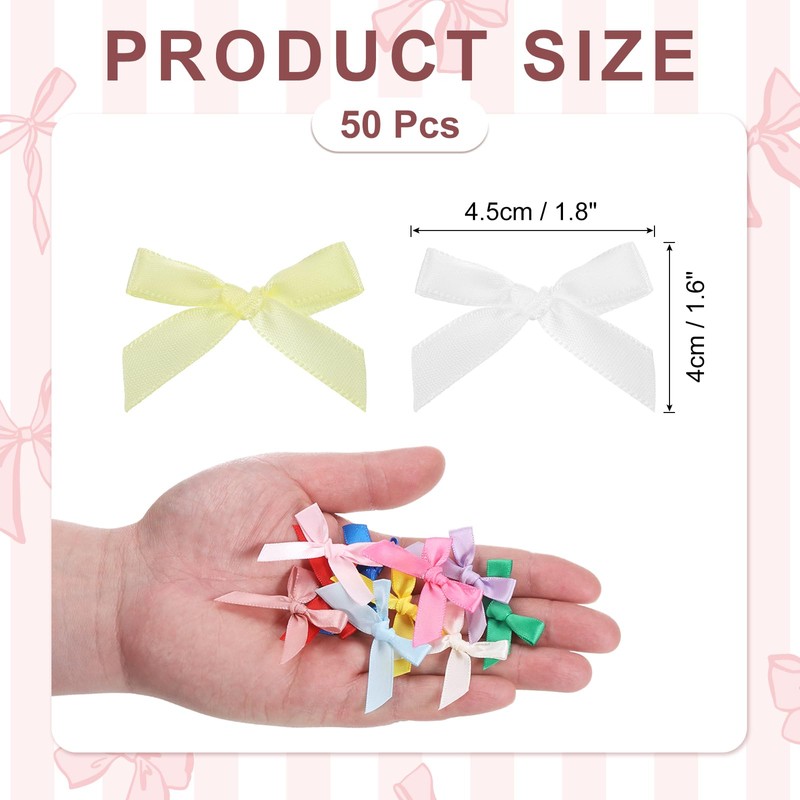 - Material: Polyester; Color: Light Yellow/White; Dimension: 4.5 x 4 cm / 1.8 x 1.6 inch(L*W); In the package of: 50 x Mini Ribbon Bows.