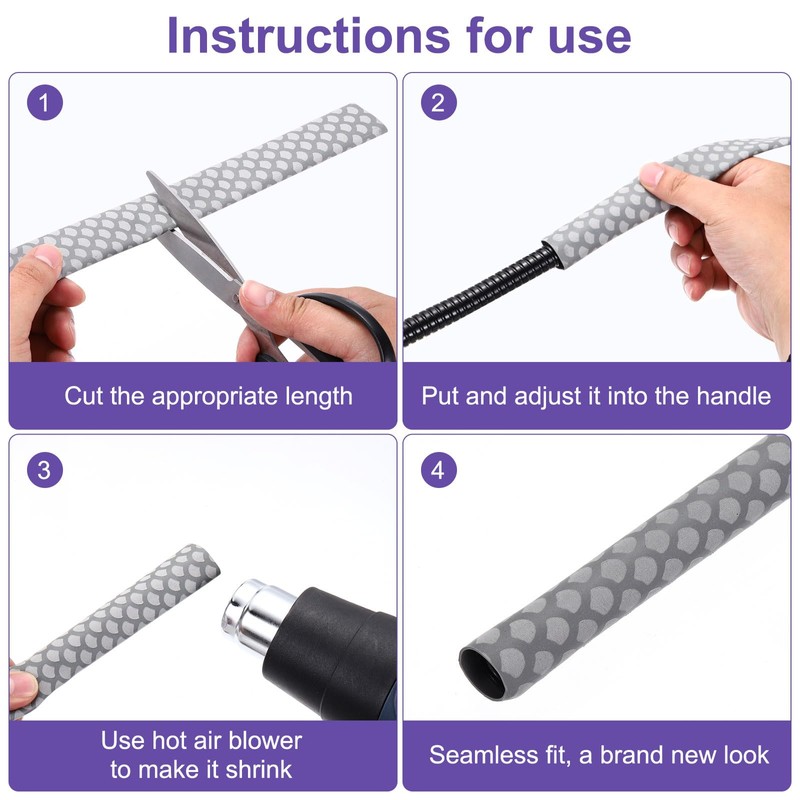 - 1. Cut the heat shrink tube to the appropriate length 2. Put it into the handle and adjust it to the appropriate position 3. Use a hot air blower or 100-degree boiling water to make the shrink tube completely shrink and absorb